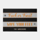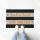 Doormat de Halloween con audaces rayas negras y grises, letras naranjas que dicen "Trick or Treat, Limpia tus pies" y un acento de araña. Una manera divertida de recibir a los huéspedes y a los que quieran jugar con trucos o trucos, manteniendo su entrada festiva y divertida. Personaliza fácilmente el nombre con sólo unos cuantos clics!