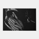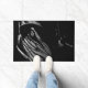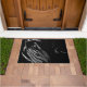 Estera de puertas mostrada con un color de fondo negro y una casa embrujada de Halloween e impresión de pañales sombríos. Personalizar esta alfombra o compra como está.