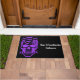 La estera de la puerta de Halloween se muestra con una estampada de calavera espeluznante. Personalizar esta alfombra o compra como está. Imagen con licencia
