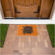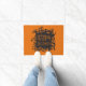 Estera de puertas mostrada con fondo negro y una impresión de Halloween Feliz. Personalizar esta alfombra o compra como está.