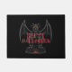 Estera de puertas mostrada con fondo negro y una estampilla de estilo gárgola de Halloween. Personalizar esta alfombra o compra como está.