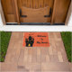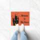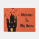 Estera de puertas mostrada con un color de fondo negro y una estampilla de Halloween embrujada. Personalizar esta alfombra o compra como está.