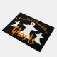 Un felpudo de Halloween con un trío de fantasmas que dice: Un hogar no es un hogar sin fantasmas.
