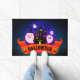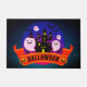 Ilustracion de una casa embrujada y personajes de caricatura.