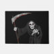 Estera de puertas mostrada con fondo negro y una estampilla de pañales sombríos de Halloween. Personalizar esta alfombra o compra como está.