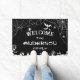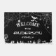 Alfombra de Halloween personalizada en negro y blanco con telarañas, árboles espeluznantes, murciélagos y fantasmas.
