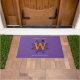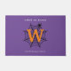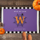 Araña Halloween Trick Web o Traer alfombra de puerta Monograma con fondo morado. ¡Truco o trato! Celebra la noche más aterradora del año con este diseño inicial de telaraña, araña y monograma en negro, blanco y naranja. Con el texto "Truco o trato" que se puede cambiar a la cita deseada. Texto listo para el personalizar con su nombre e Inicial.
