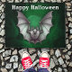 Felpudo Halloween Spooky Gray Flying Bat Green Cave