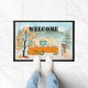 Feliz Camper Autumn Door Mat con lagos, ciervos y arce.