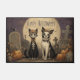 Felpudo Happy Halloween Skeleton Cat and Dog in Graveyard