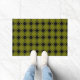 Este doormat tiene un diseño moderno de mediados de siglo de diamantes negros sólidos dentro de los contornos de diamante negro en un campo de verde.