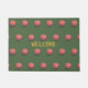 Hermosas rosas rosas en la alfombra de la puerta verde del cazador. El texto de bienvenida puede ser personalizable.