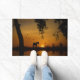 Una imponente alfombra de puertas con grandes colores cálidos suroccidental, un caballo junto a un estanque de agua con pájaros todo reflejado en el agua. Estera de puerta de caballo de super bonito.