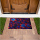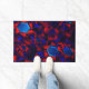 Felpudo hexágono azul mezclado con curvas rojas superpuest