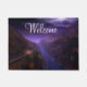 Es una noche a la luz de la luna en un valle del río entre colinas marrones con hierba otoñal y árboles. Las luces de un vagón solitario iluminan el estrecho camino que sigue la ladera de la colina a lo largo del río. En las laderas de las montañas oscurecidas por una niebla violeta, las luces de los hogares de pueblos distantes esperan para dar la bienvenida a la solitaria casa del viajero.