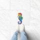 Arco de arcoiris, caballito de mar poligonal sobre fondo blanco. Tatuaje brillante.