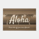 Color marrón. El mensaje de Aloha da la bienvenida a sus visitantes a su propio paraíso tropical. Las palmeras balanceadoras juegan contra un fondo de rayas gráficas en esta impresión que recuerda a los diseños usados en camisetas de aloha hawaianos y pantalones cortos. Este diseño se presenta en varios colores. Puede personalizar el mensaje.