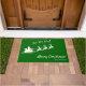 Añada un toque divertido de temporada a su casa con esta alfombra de puerta blanca y verde personalizado. Mat presenta un fondo verde con el saludo blanco de Feliz Navidad y el texto de Ho Ho Ho Ho, tu apellido familiar y Santa Claus volando en su trineo con renos. Este felpudo también hace un gran cumpleaños personalizado, ducha de novia, boda, Navidades u otro regalo de vacaciones.