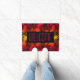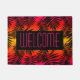 Esta estera de puerta dice "agradable" en rosas fuertes, las sombras o las siluetas de la hoja de la palmera de las características del diseño en una puesta del sol del verano de la diversión.