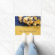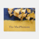 el ginkgo amarillo del otoño se va en el papel azul y amarillo