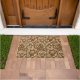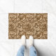 Doormat en un diseño William Morris de hojas estilizadas de acanto y flores de botón de soltero, realzado digitalmente y coloreado en beige delineado en marrón de chocolate oscuro, sobre un fondo medio de chocolate