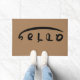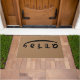 un ambigrama de la palabra en inglés hola y la palabra en español adios para un felpudo que lee ambos lados, dentro y fuera. un doormat de dos vías.