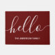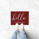 Hola caligrafía Script moderno Burgundy Doormat personalizado