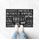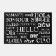 Felpudo Hola en diferentes idiomas blanco negro elegante