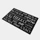 Hola en muchos idiomas diferentes negro y blanco elegante moderno divertido Doormat