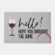 Nuestro divertido felpudo de vino adornado con el texto Hello1 Hope Your Brought Wine, una copa de vino y una tinción de vino. Vea nuestra línea completa de productos para el hogar personalizado en nuestra tienda Zazzle.