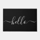 Una elegante alfombra de puertas de hola moderna con una tipografía moderna de escritura blanca sobre el negro.