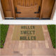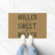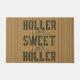 Una alfombra de puerta delantera para los que viven la vida en el campo. Texto "Holler Sweet Holler" sobre el fondo de los tonos de tierra vintage