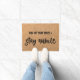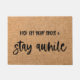 Un felíz felpudo con el texto "Quítate los zapatos y quédate un rato". Un lindo felpudo para tu casa o como regalo para el hogar.