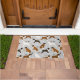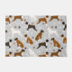 Los perros "Cute Boxer" se sientan y se alinean con los abrigos romanos, blancos y afeitados con huesos de perro esparcidos y con el patrón de las huellas.