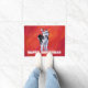 Festividad de desfile animal Perro Husky en un Sombrero Santa sobre Navidades rojos texturados regalos y accesorios traídos a ustedes por Imagine That! El diseño presenta nuestro original arte de un mono Husky Siberiano blanco y negro adornado para las vacaciones con un brillante sombrero de Papá Noel rojo en la cabeza y una flor alegre y verde en el trasero con un alegre arco rojo contra un fondo rojo texturado. Únete al Desfile de Animales y haz que alguien que amas sonría con un regalo de nuestro Husky perro festivo vestido para las vacaciones. ¡Vaya!