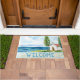 Blue Beach Coastal Ocean Welcome Doormat con un hermoso fondo de playa y una Iglesia Roja Superior. Ideal para una casa frente a la playa o una iglesia, como regalo para amigos y familiares viviendo frente al océano.