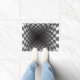 Un diseño a cuadros blanco y negro que crea una ilusión óptica de la gran profundidad.