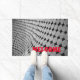 Este doormat de bienvenida monocromático con un patrón de círculos decrecientes que crea una ilusión óptica de ondas contorneadas de círculos grises y diamantes negros es un saludo divertido y único.