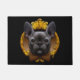 Retrato de ilustracion de bulldog francés con marco de imagen ornamental de oro y corbata marrón con puntos de polka beige