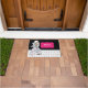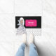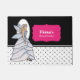 Diseñado en base a mi ilustracion de moda de una hermosa dama rubia de cabello vestida con un elegante y elegante vestido de pétalo de flores blancas. El diseño tiene puntos de polka blancos y negros en el fondo, una moda y un doormat de estilo moderno, perfecto para su hogar o negocio. Personalizable con tu propio texto para un diseño personalizado.