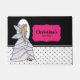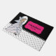 Diseñado basado en mi ilustración de moda de una hermosa dama de cabello rubio que lleva un impresionante vestido clásico elegante de flor de pétalo blanco gris. El diseño tiene lunares negros y blancos en el fondo - una alfombrilla de estilo chic y moderno, perfecta para su hogar o negocio. Personalizable con su propio texto para un diseño personalizado.