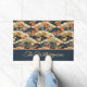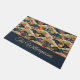 Este doormat de estilo vintage presenta una impresión de estilo kimono japonés con blanco, verde azulado, bronceado y naranja en verde azulado oscuro, casi negro. Su monograma de nombre aparece en texto dorado en un bloque de color coordinado de verde azulado oscuro, bordeado por el naranja. También puede usar otro texto como "Bienvenida" o una frase corta optimista, si lo prefiere.
