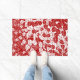 Doormat en una huella kimono japonesa - un patrón de hojas estilizadas en todas partes, alternando espacio positivo y negativo, en rojo y blanco profundo chino