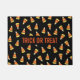 ¡Truco o vístete! La estera de puerta festiva presenta una impresión de maíz dulce de dulce en acuarelas agitadas, sobre un espeluznante fondo negro con "Trick or Treat" en un texto festivo naranja. Artículos de coordinación disponibles en nuestra tienda!