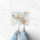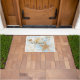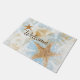 Este Welcome Doormat tiene una hermosa huella de pez estrella de la costa con una estrella de mar grande y pequeña realista y varias otras impresas en blanco sobre fondo azul claro y bienvenido en un tipo de letra de guión. Busque otros productos en esta colección de peces estelares costeros. Diseño del Emporium de Jenn.