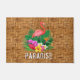 Un flamenco rosa, flores tropicales y hojas con la palabra PARADISE o cualquier otro texto que elija en un patrón de impresión de mimbre trenzado hace un doormat de verano elegante. (No es mimbre real, es un ilustracion impreso a todo color.) COINCIDIENDO con los artículos de nuestra tienda.