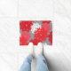 Doormat en una toma moderna en una impresión floral japonesa tradicional del kimono - flores estilizadas en rojo chino profundo, el rojo coralino, y el blanco en un fondo gris/gris oscuro del grafito