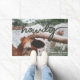 Acercarse y ser personal con este cordero de orejas pintado en un estilo impresionista. Naranja oxidado, borroso gris, blanco y verde para crear este encantador retrato de nuestra vaca estatal. La palabra "afeitado" da la bienvenida a sus invitados. Personalice el nombre o mensaje de su familia en la parte inferior. Productos a juego disponibles.
