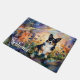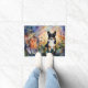 This image features a black-headed tri-colored corgi amidst a vibrant field of flowers. The artwork is rendered in a fluid alcohol ink style, creating a unique visual effect.