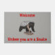 Haga reír a sus huéspedes y los vendedores se estremecen con este divertido batidor de miel a punto de tomar un diseño de cobra con el lema "Bienvenidos, a menos que seas una serpiente". Tengan cuidado, los badgers de miel son realmente los animales más duros del planeta. Las insignias de miel se apoderarán de los leones, las serpientes y cualquier otra cosa que se interponga en su camino. Este diseño de badger de miel y de cobra doormat es el regalo perfecto para los amantes de los animales y los que admiran a estos valientes animales. Celebra el hecho de que 'los atracadores de miel no temen al mal'. Este diseño es totalmente personalizable, por lo que puede añadir su propio lema si lo desea. Creado por la artista Catherine Sweetman